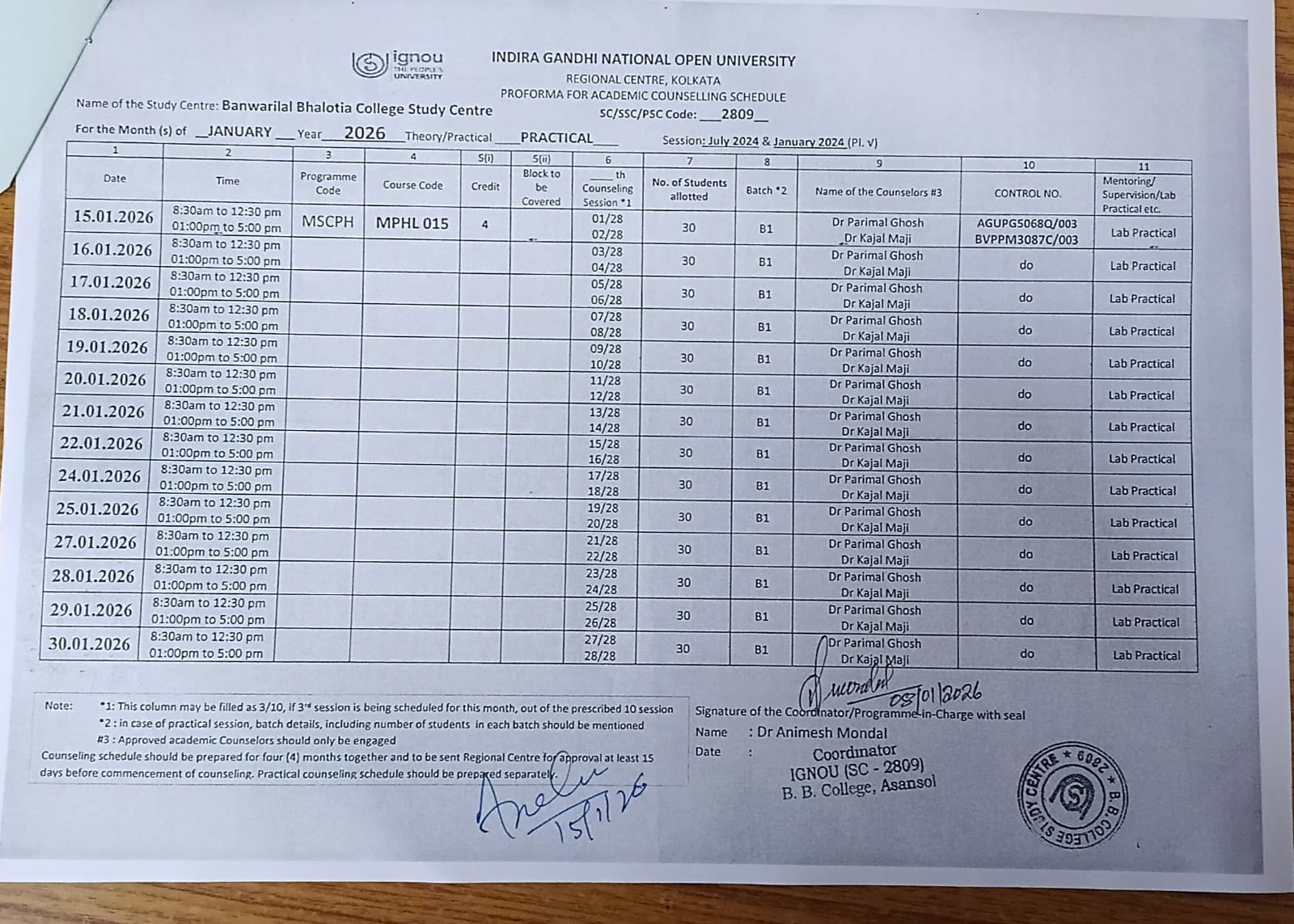 BPCC114 Practical Class at IGNOU LSC 28149