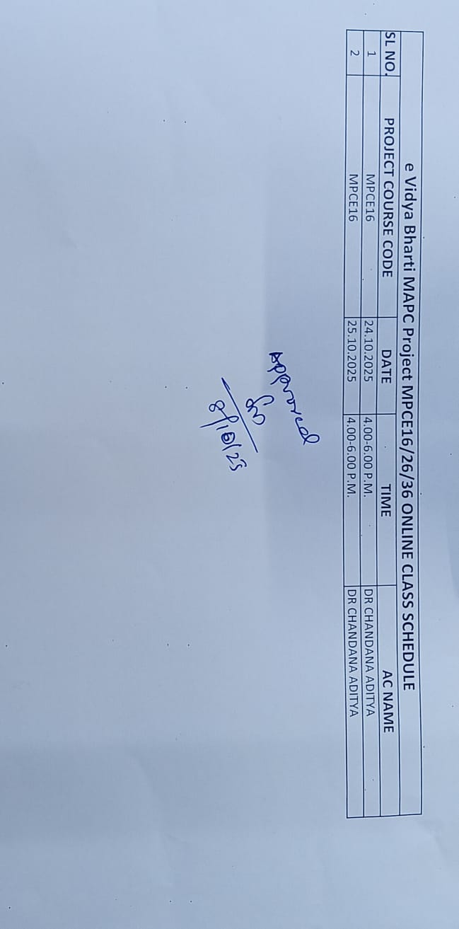 e Vidya Bharti MAPC Project MPCE16 26 36 Online Class Schedule